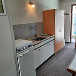 Værelsesfaciliteterne inkluderer også et køleskab, et komfur og en komfur top til egen forplejning.